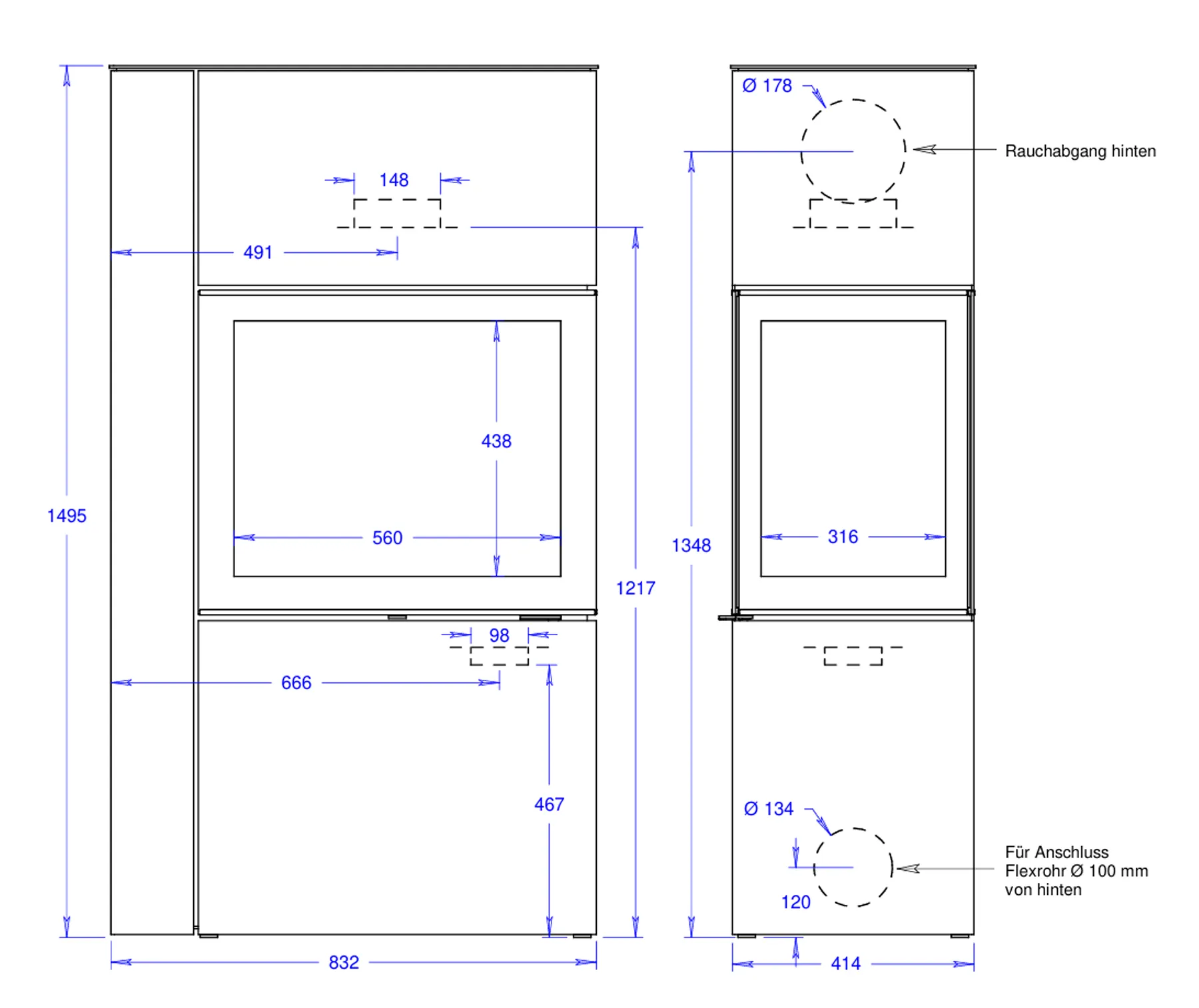 Disponible avec une porte en acier ou une porte de foyer plein verre, vous pouvez également choisir le sens d’ouverture de la porte ou opter pour un modèle à double porte.