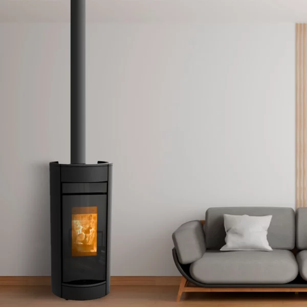 Poêle à bois Thermorossi : le Moma Wood canalisable, avec un rendement supérieur doté de l’innovation Smoke Bypass : en activant ce système avant chaque recharge de combustible, il est possible de limiter l’émission de dumée dans la pièce. Réchauffez plusieurs pièces avec le système de ventilation optionnel AIRBOX. En insérant cet accessoire, le poêle devient ventilé et canalisable, avec jusqu’à 91% de rendement.
